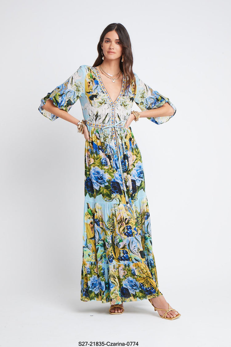 BLOOM GARDEN WAIST DRAWSTRING MAXI DRESS