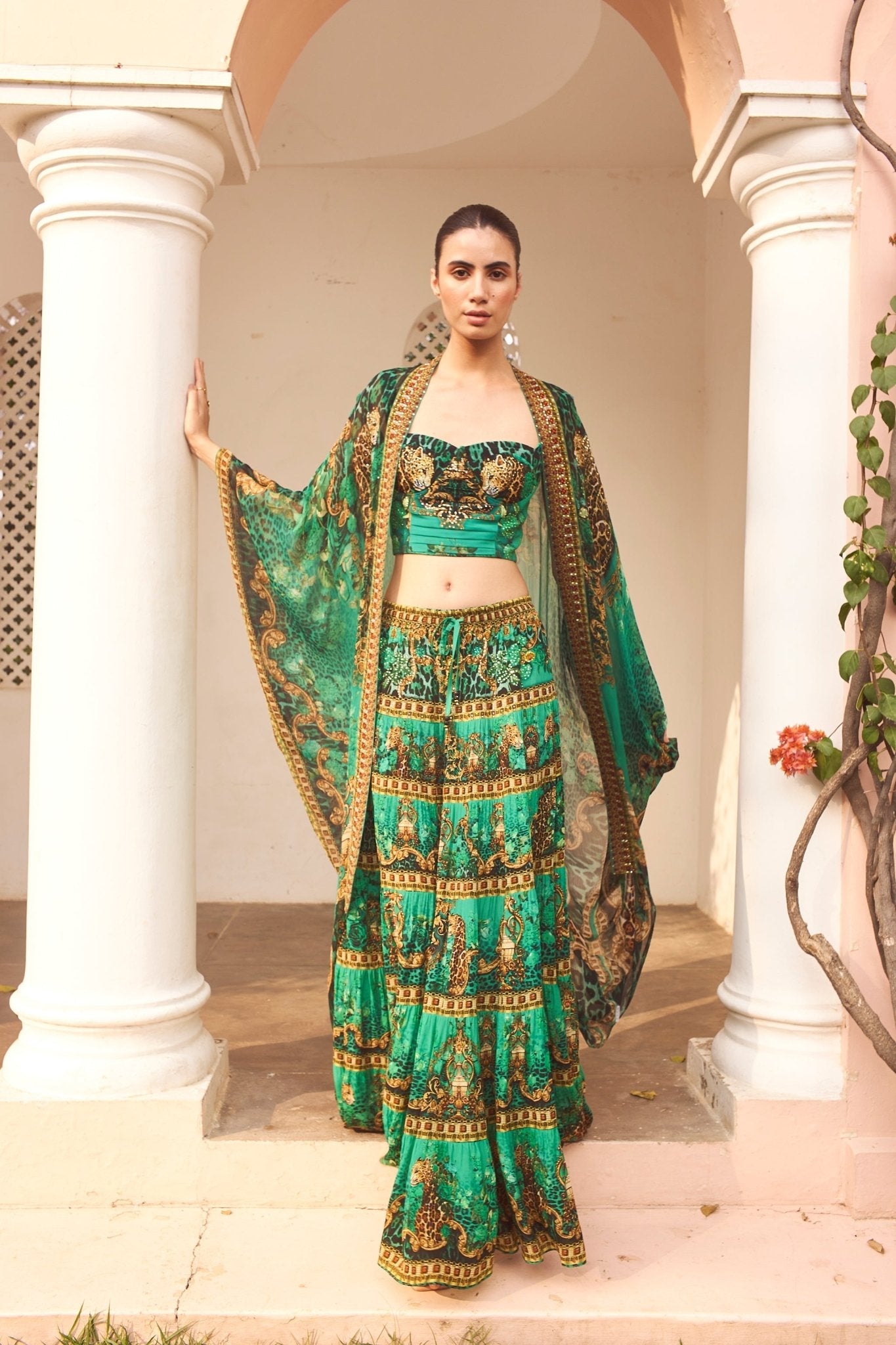 Embark on a luxurious journey of style and confidence with the green goddess Medium Cape. Crafted with high-quality silk chiffon fabric and delicately hand-embellished with crystals, this midi-length cape features an exquisite leopard print that exudes a stylish sophistication. Make a statement that is both remarkable and timeless with the Emerald Leopardess Medium Cape.